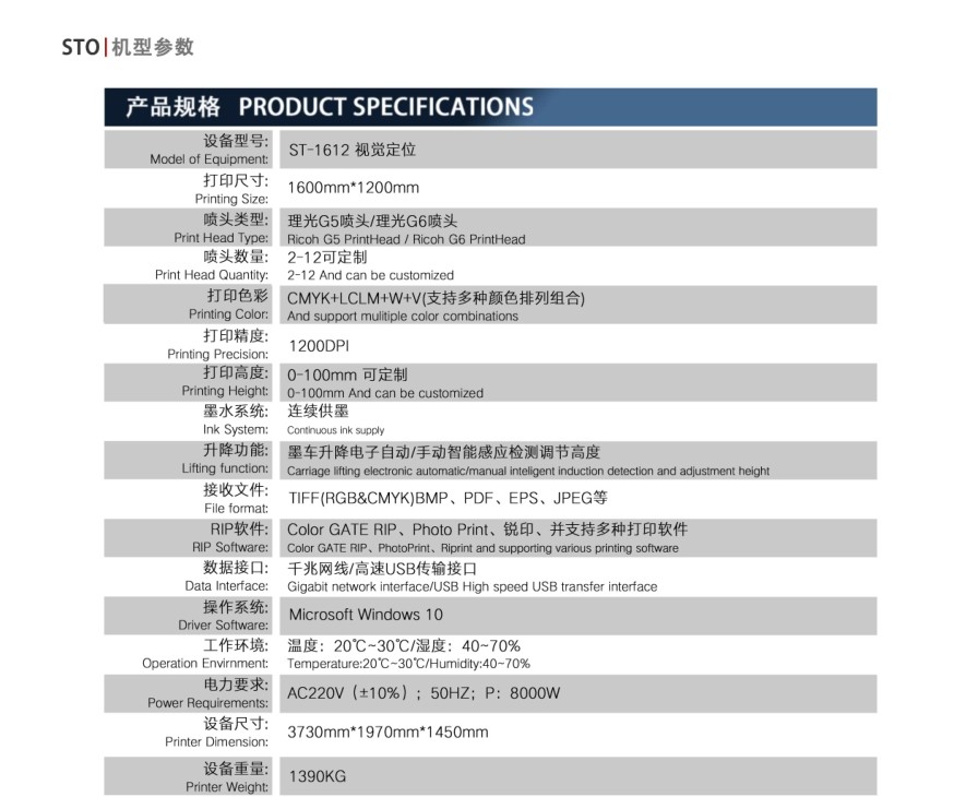 磁懸浮理光G6配置:草稿模式 4PASS:60㎡/h 生產(chǎn)模式6PASS:45㎡/h 高精模式 8PASS:30㎡/h