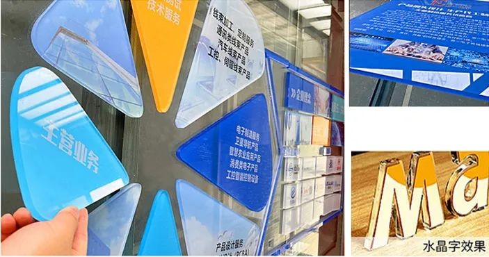優勢:多層立體堆疊、玻璃光澤。 水晶廣告UV工藝—整體亞克力板制作