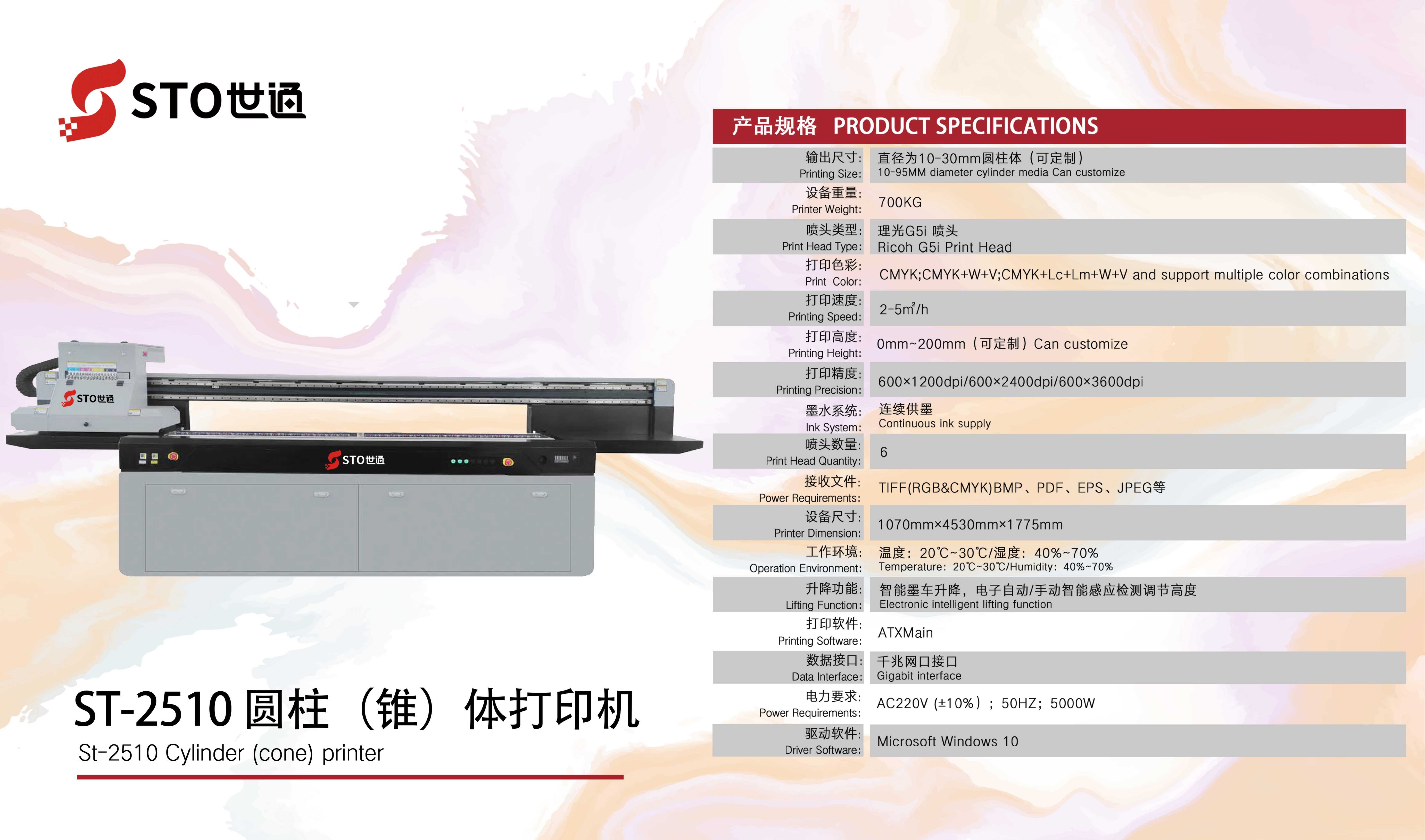 高速圓柱體打印機是一種通過噴墨原理和UV打印相結合的一種新型打印工藝。針對目前圓柱體、不規(guī)圓錐體的打印需求,世通研發(fā)升級了針對圓柱體圓錐體的高速UV打印機,為圓形的曲面承印物旋轉進行噴繪,可以打印多種常見的各種圓柱形物體和不規(guī)則錐形容器,如化妝品口紅管、各類化妝品瓶體、各類包裝、不銹鋼保溫杯、塑料瓶、筆筒、酒瓶等圓柱體產品。