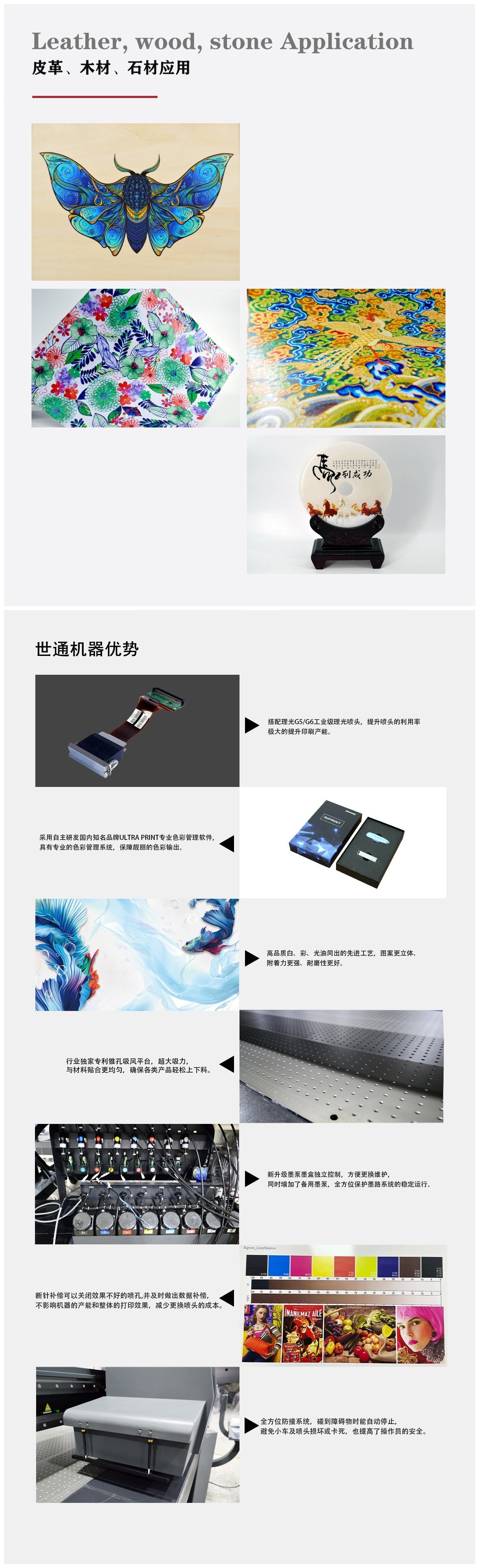 世通皮革uv打印機在皮革行業的應用有:皮革箱包uv打印機、拉桿箱uv打印機、鞋子uv打印機、帆布包uv打印機、天然皮革打印機、人工合成革打印機、再生革打印機、合成革uv打印機、PU革uv打印機等。世通智能UV打印機為皮革行業提供完整的工業打印解決方案。