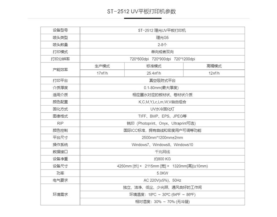 ST2512 UV平板打印機為世通中大型UV平板打印機,它廣泛運用在廣告UV打印行業(yè)、背景墻UV打印行業(yè)、藝術品uv打印行業(yè)、手機殼UV打印行業(yè)、包裝盒UV打印行業(yè)、玩具UV打印行業(yè)、家裝UV打印行業(yè)等所有行業(yè)及材料的平面UV打印;可打印尺寸2500MM*1200MM, 光彩白同步輸出的先進工藝,介質(zhì)厚度在0.1-80MM。